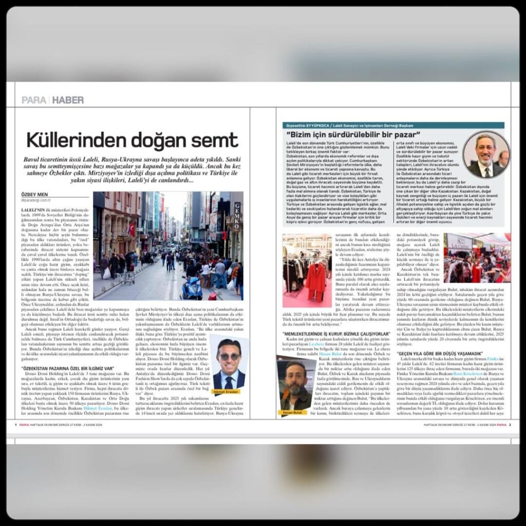 Eşsiz tarihi ve kültürüyle, farklı medeniyetlerin bir araya geldiği, ticaretin can damarı Laleli’yi ele aldığımız Hakan Özbay’ın sorularını yanıtladığımız Türkiye İş Dünyası Dergisinde yayınlanan yazımız.